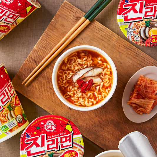 Jin Ramen Hot - Sopa instantánea sabor a Carne Picante en Vaso
